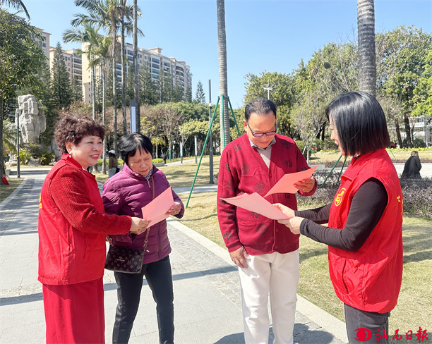 巾幗志愿者在公園開展“綠美宣傳進(jìn)萬家”活動(dòng)。