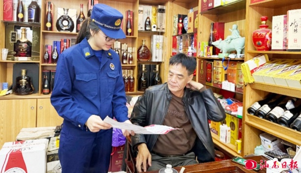 消防人員向商戶普及消防安全常識。