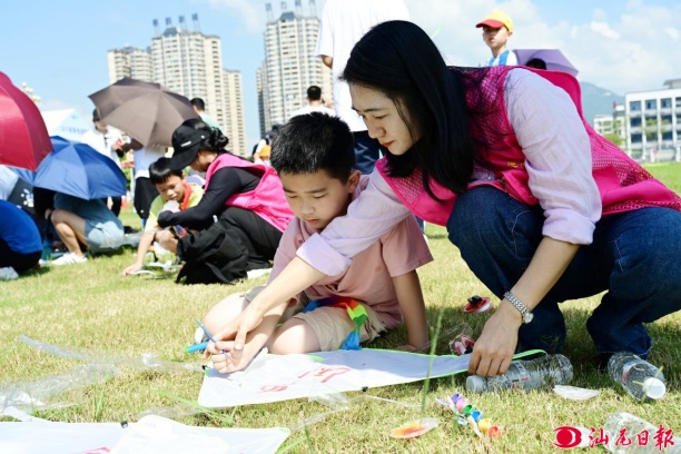 陸河縣活力箏鳴風(fēng)箏嘉年華活動(dòng)現(xiàn)場,親子共繪“天空之夢”。