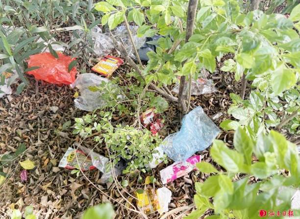 公園綠化帶的生活垃圾。