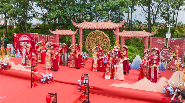此次集體婚禮活動(dòng)遵循中式婚禮基本禮儀,并將傳統(tǒng)文化、特色美食與文明新風(fēng)融合呼應(yīng),向社會(huì)倡導(dǎo)簡(jiǎn)約適度、綠色低碳的文明婚俗新風(fēng),推動(dòng)全社會(huì)樹立正確的婚戀價(jià)值導(dǎo)向。